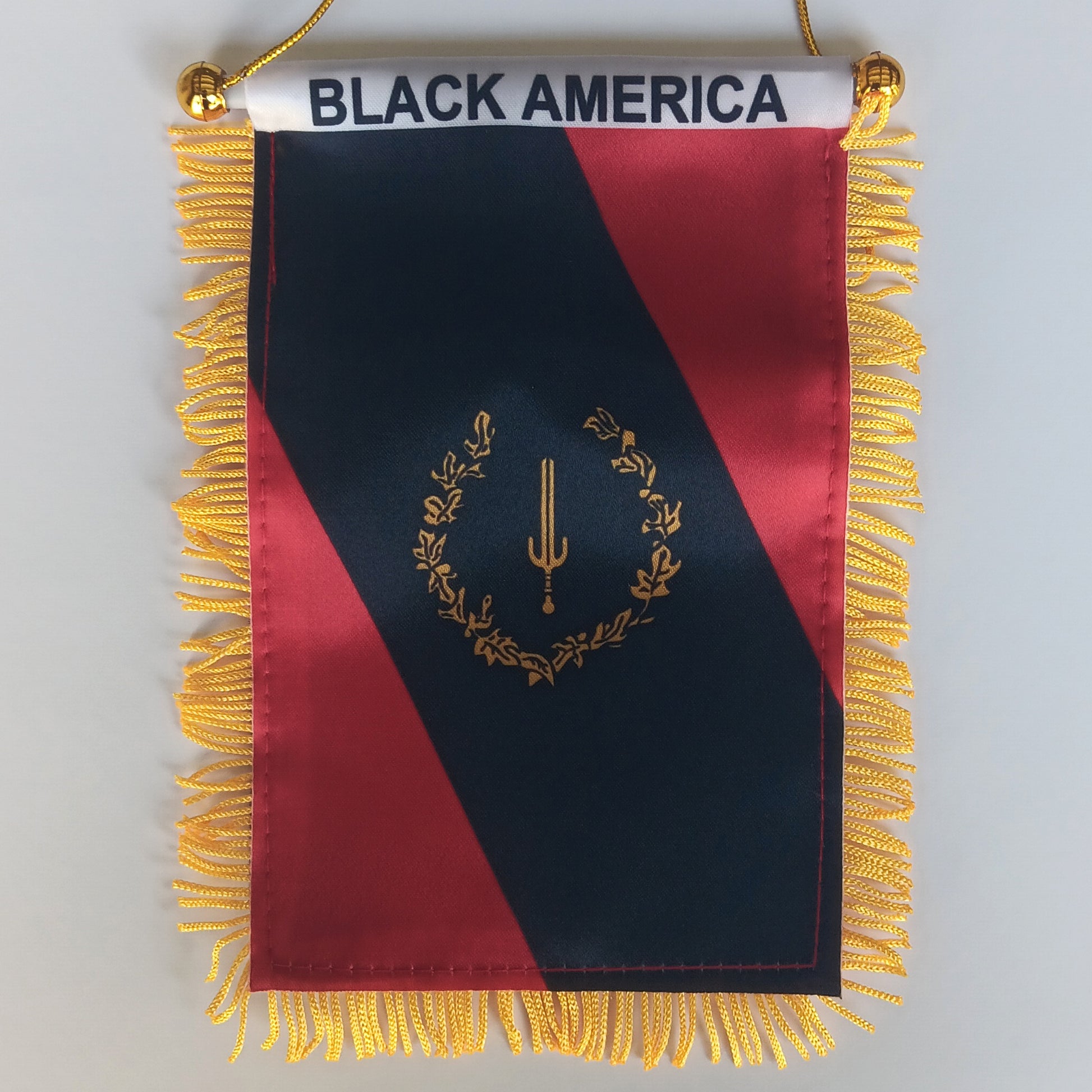 4 X 6 Inch Black American Heritage Classic Window Hanging Flag - Rearview Mirror & Double Sided - Fringed Black American Classic Mini Banner with Suction Cup